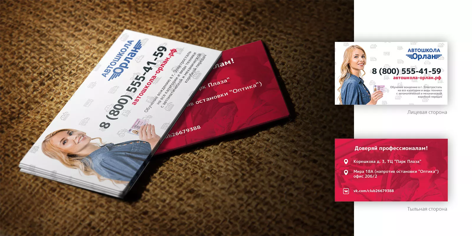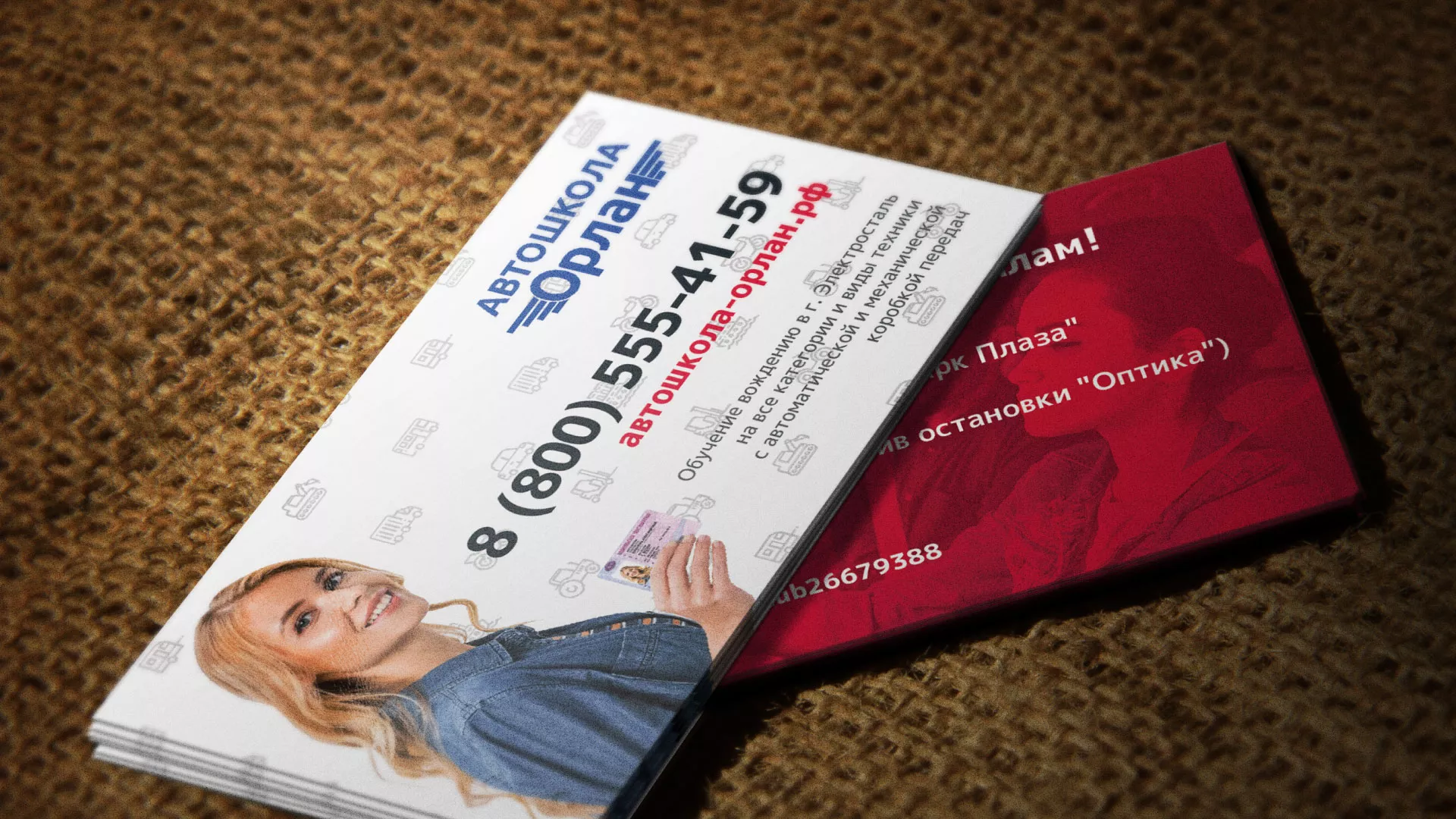Разработка рекламных визиток автошколы «Орлан» в Петухово
